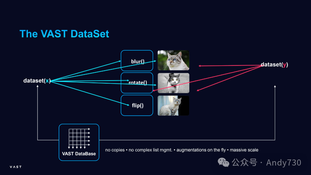 因此,客户无需在训练之间复制数据,也无需处理复杂的列表管理问题。客户可以实时创建数据增强,并将其作为新代码添加到训练过程中。想象一下,一个可扩展至EB级别的数据集,这无疑是一个颠覆性的概念。而且,我之前提到的所有WORM保留功能都可以在此平台上得到应用。这为企业提供了在需要时复制任何训练运行的能力,因为所有内容都已通过VAST DataSet进行了保留和版本化管理。