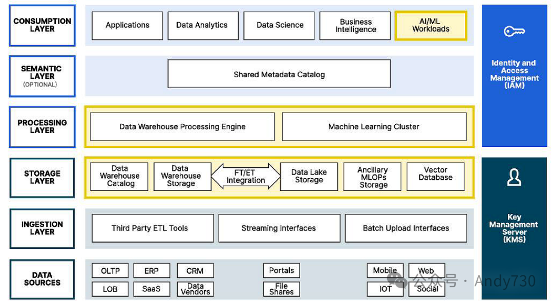 企业不应仅为AI设立专门的基础设施,而忽视商业智能、数据分析和数据科学等其它工作负载。应构建一个全面的数据基础设施,以满足企业所有需求,包括商业智能、数据分析、数据科学、判别式AI和生成式AI。