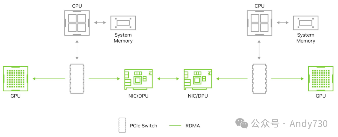 远程直接内存访问(RDMA,Remote Direct Memory Access)技术的出现,进一步提升了网络传输的效率。它允许数据在远程系统、GPU和存储器之间直接传输,无需经过CPU的干预。传统的网络传输方式涉及多个复杂的步骤,包括数据的复制、网络发送以及接收方的多步骤处理。而RDMA则直接跨越了这些繁琐的中间环节,实现了数据的高效传输。