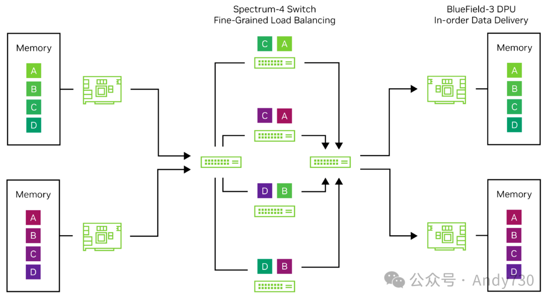 图2:NVIDIA:Spectrum-X以太网自适应路由的细粒度数据包示意图