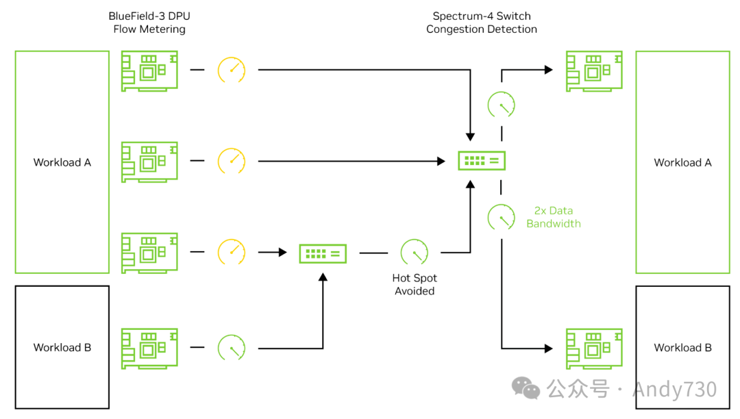 图3:NVIDIA:Spectrum-X以太网拥塞控制与交换机和NVIDIA BlueField DPU协同工作