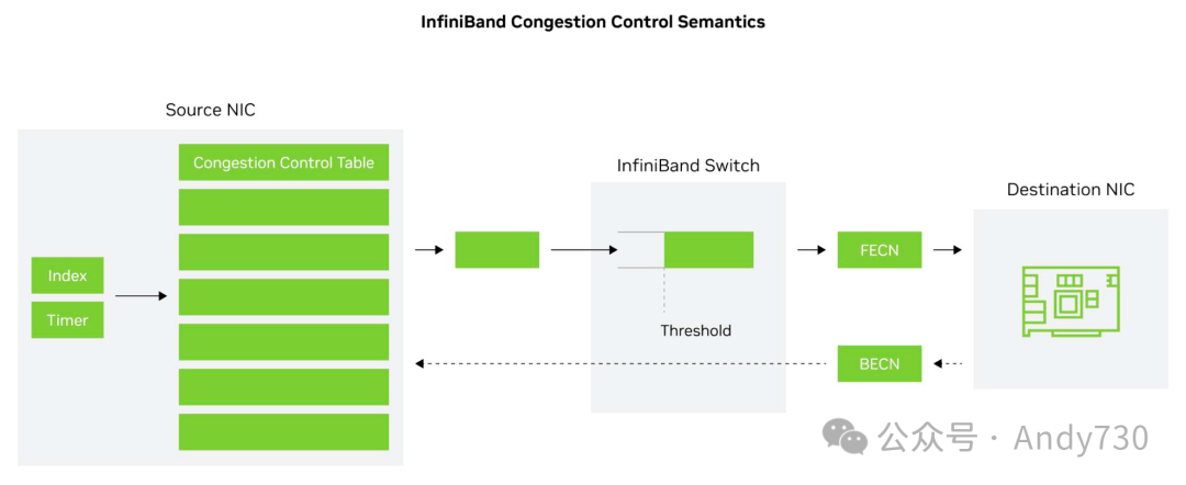 图7:NVIDIA Quantum InfiniBand拥塞控制机制示意图