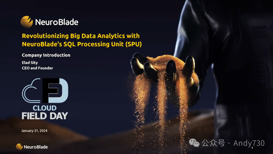 我是NeuroBlade公司的首席执行官Elad Sity。今天,我将与大家分享关于NeuroBlade以及我们如何加速大数据分析的相关内容。稍后,我们的市场副总裁Mordechai和首席产品官Krishna也会分别上台发言,深入探讨市场和产品方面的细节。