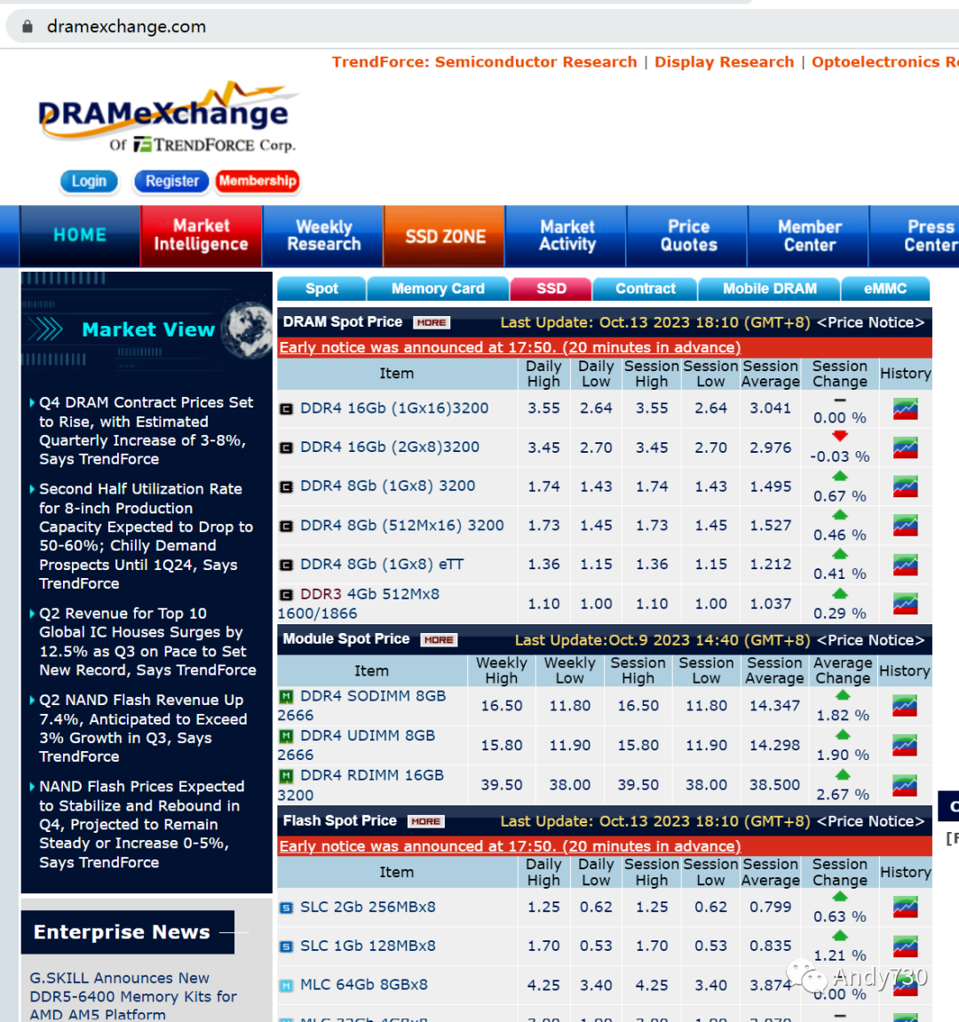DRAMExchange提供了一个视图,以供客户以这个价格购买DRAM。尽管这不是“成本”,但它确实提供了购买DRAM组件以构建自己的SSD的成本的参考。如果想根据DRAM价格来计算预估的毛利,或者如果希望准确地了解制造成本,可以获得一个大致的成本估算。