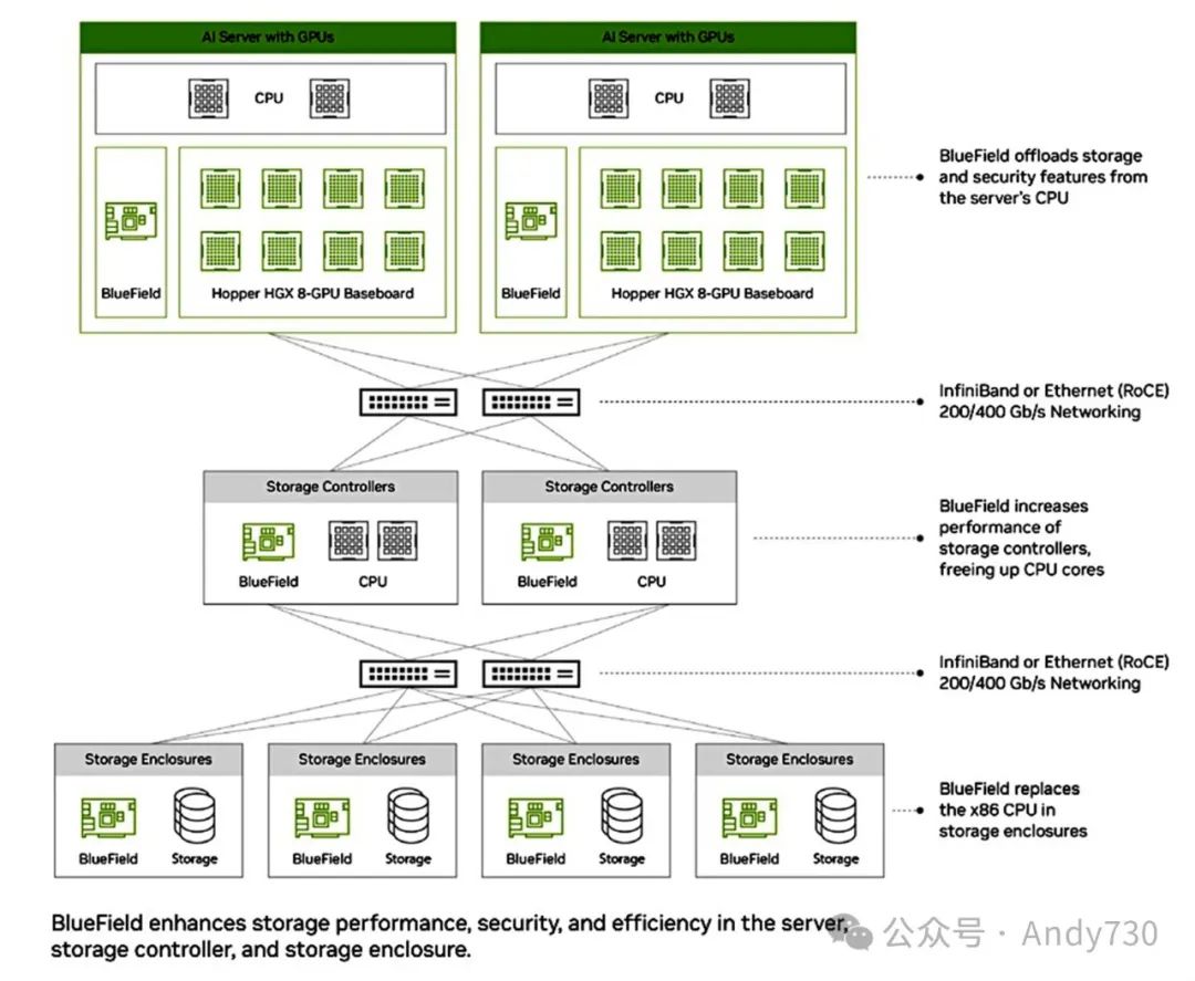 紧接着,VMware也对这一技术进行了深化拓展。他们证明,只要基础设施软件设计得当,便可利用NVIDIA BlueField DPU大幅提升系统整体性能。在vSphere 8.0的发布中,VMware更是将vSphere分布式交换机以及NSX网络及可观察性堆栈的关键组件转移至NVIDIA DPU上。如今,VAST Data也采用了类似策略。