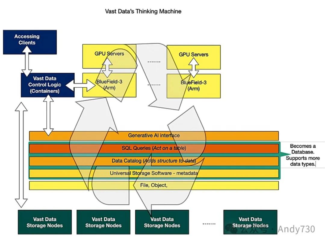 去年五月,我们曾在一张图表中阐释了VAST的Thinking Machine愿景,对此,Bhattacharyya表示:“这次公告正是对该愿景的切实实现。”
