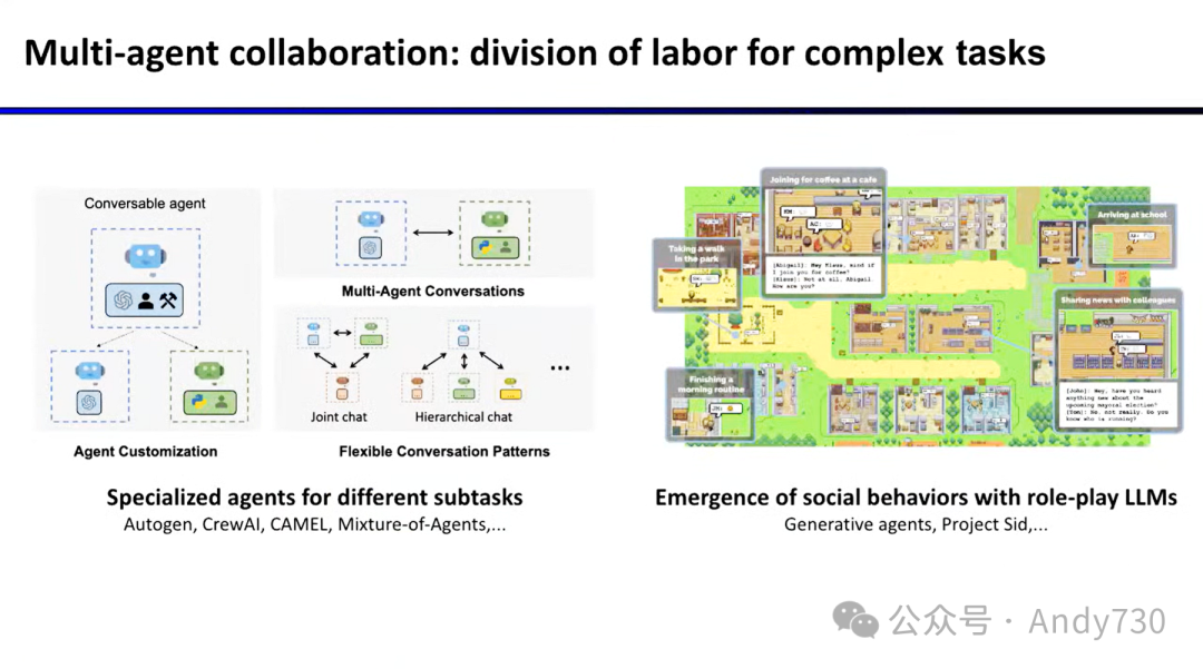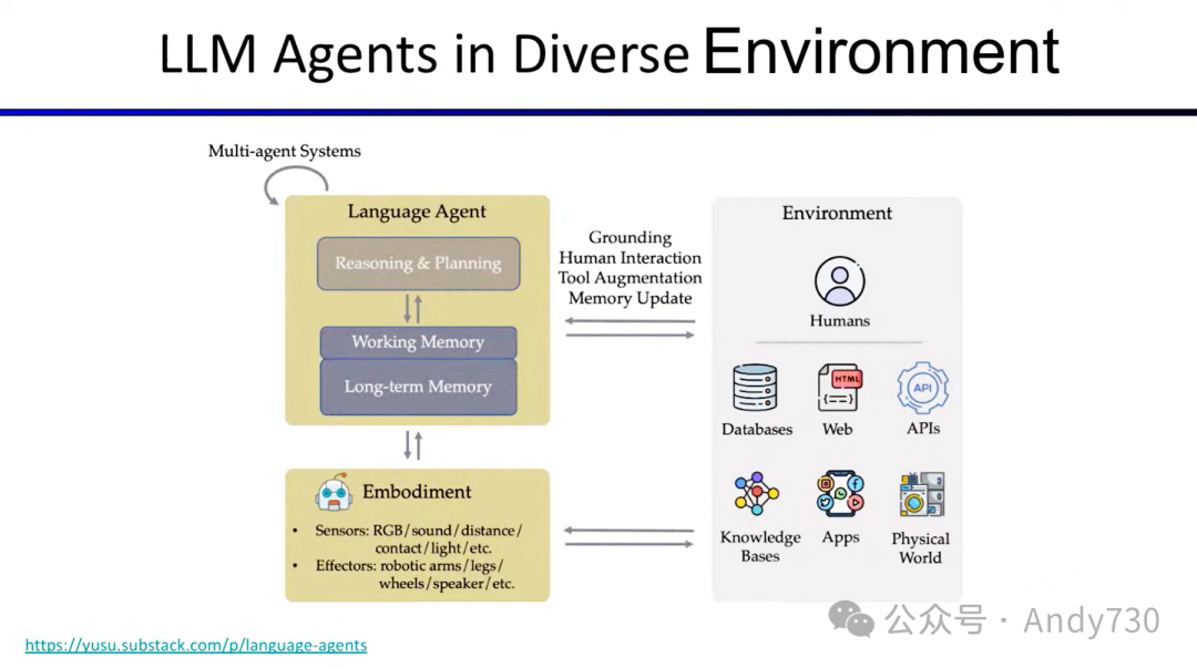 这些代理不仅与环境互动,还可以与其他代理,包括人类合作。这种多代理协作有助于代理解决更复杂的任务。