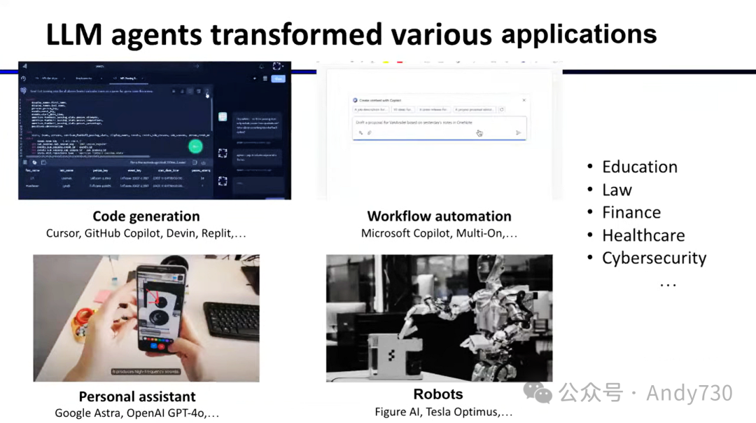 虽然这是一个近期的发展,但我们已经看到代理正在转变各种应用领域,包括教育、法律、金融、医疗和网络安全等。