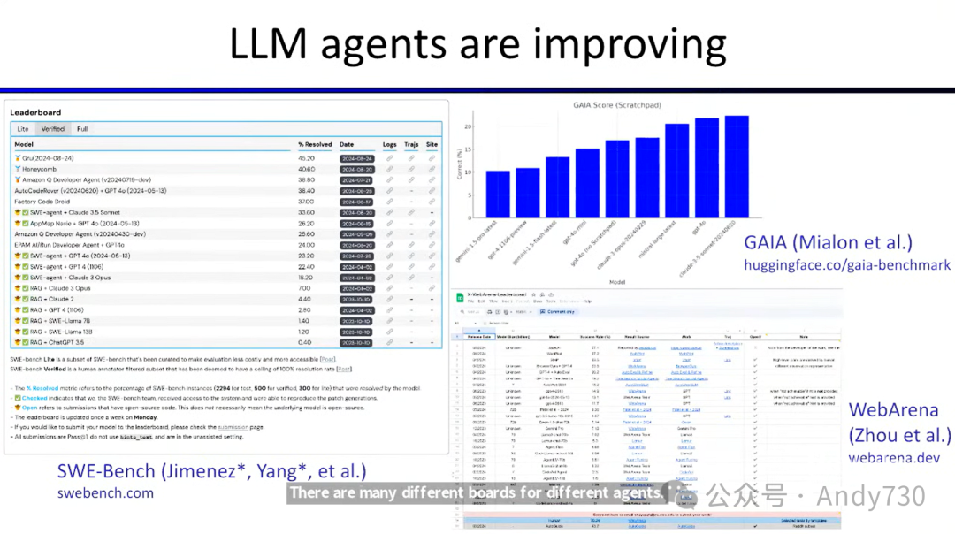 这个发展令人兴奋并迅速提升。在线上有许多不同代理基准的排行榜,展示了各种框架的快速进步。