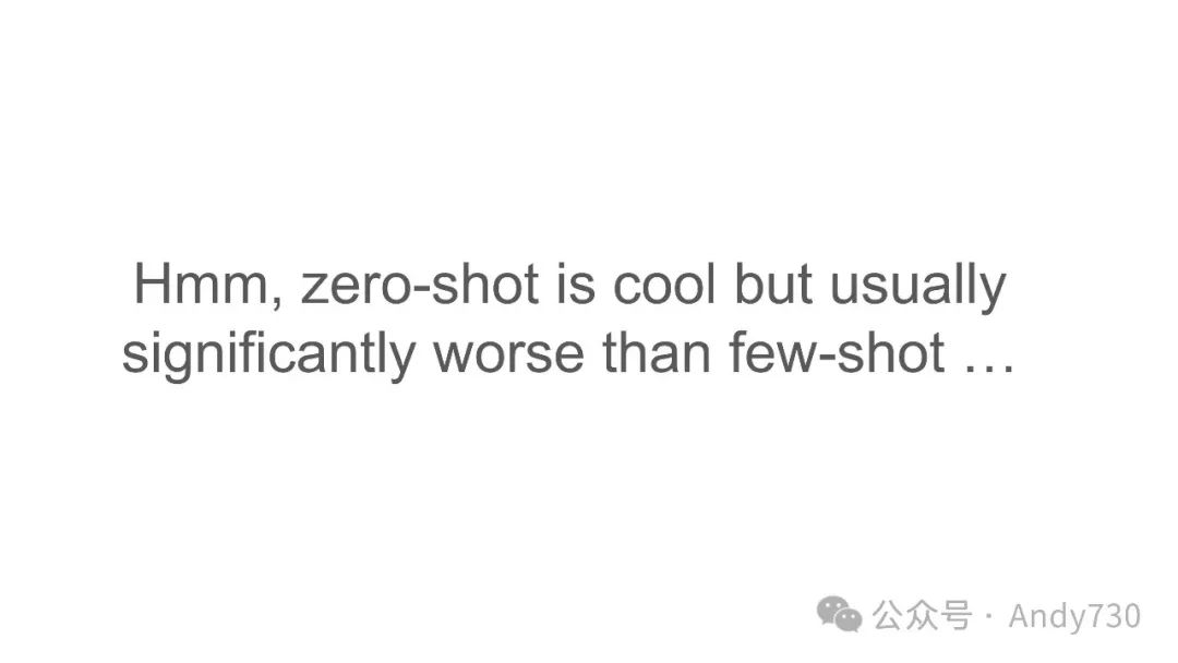 这种方法令人着迷,但通常情况下,zero-shot方法——即没有演示示例——的效果不如few-shot方法。