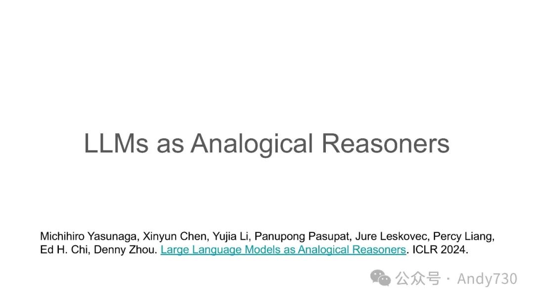 人们可能会想,我们能否找到一种保持zero-shot但表现显著更好的方法。这引出了另一项名为“将大型语言模型视为类比推理者”的研究。