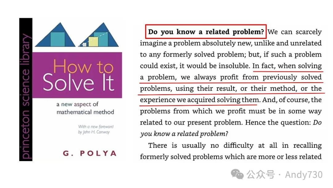 现在,给定一个简单的问题,可以采取不同的方法。通过调用一个相关问题,我们可以解决新的问题。即使问题看起来相同,相关的示例和知识也是有价值的。