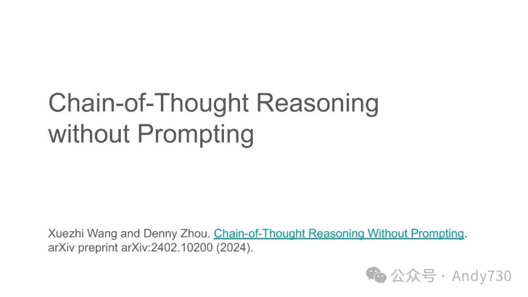 我们发现答案是肯定的。这在我们最近的研究“没有提示的链式思维推理”中有详细说明。这意味着在没有提示的情况下——仅向模型提供问题,即使对于现有的大型语言模型。