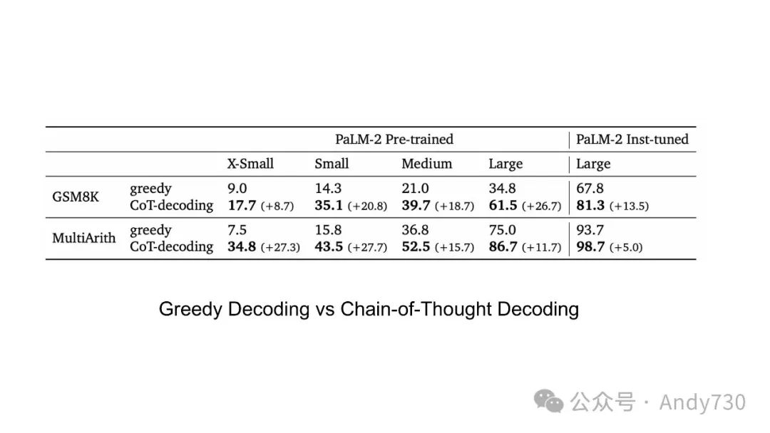这里是贪婪解码和链式思维解码的比较。我们可以看到,链式思维解码的表现要好得多。到目前为止,有什么问题吗?