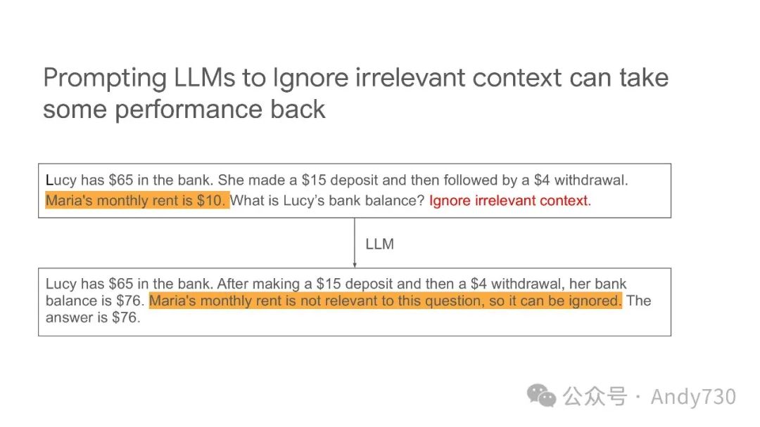 有趣的是,如果我们添加一个提示,比如“忽略无关上下文”,模型会立即识别并进行修正。