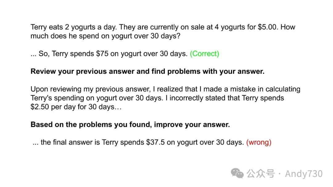 然而,如果原始答案是正确的,而我们使用相同的提示,模型仍然可能出错。这就是问题所在。