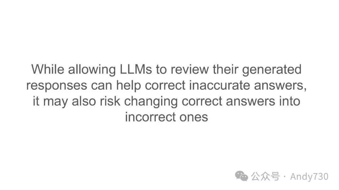 总体而言,尽管允许大型语言模型回顾其生成的响应可以帮助纠正不准确,但也有可能将正确答案改为错误答案。
