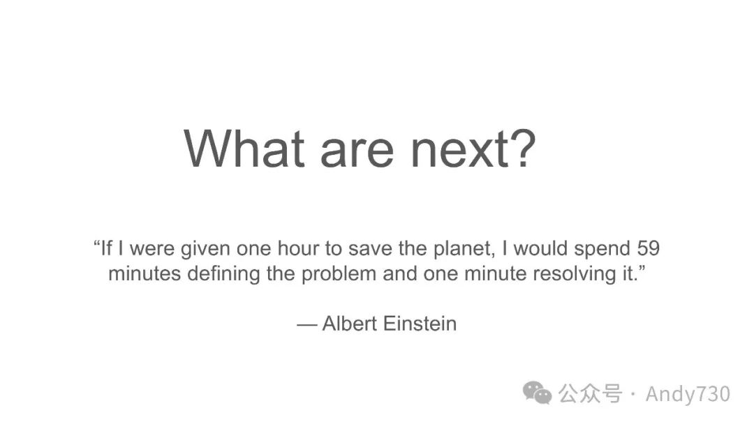 在我演讲时,我常常问:接下来是什么?我们想要解决什么问题?我认为目前最紧迫的挑战是,在考虑通用人工智能(AGI)时定义正确的问题。关注点不应仅限于我们在AGI中能看到的内容,而应在于从基本原则出发,定义正确的问题,而不仅仅依赖于既定原则。在这方面,机器学习仍然至关重要。