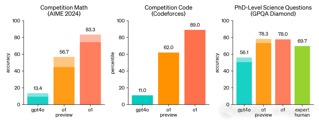 o1-preview和o1-mini模型已可即时使用。我们同时公布了尚未完全定型的o1模型评估结果,以展示这不仅是单次改进,而是全新的扩展范式,我们才刚刚起步。