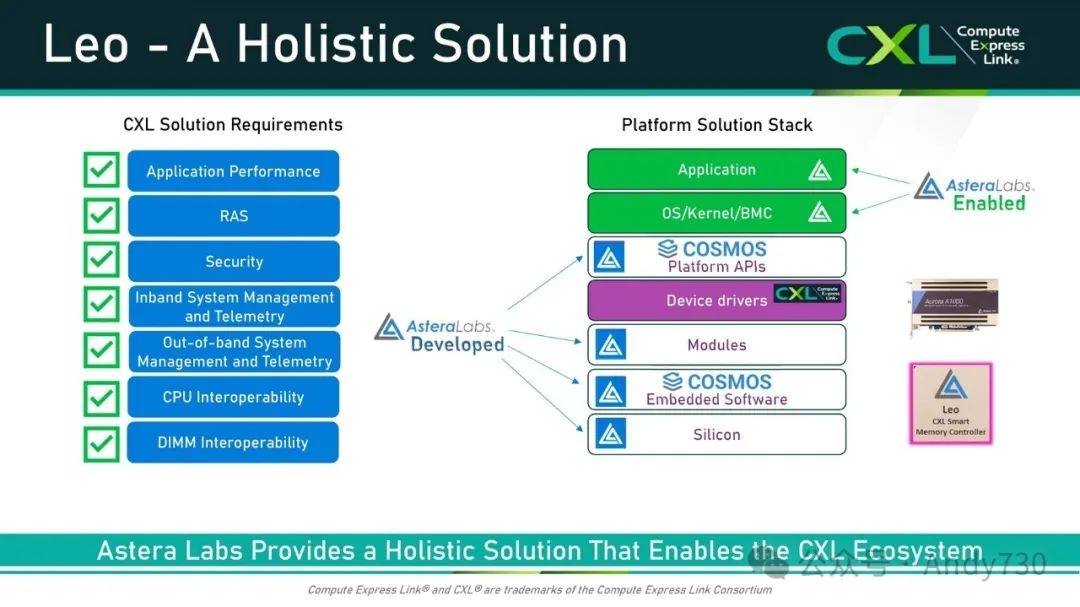 - Astera Labs开发了COSMOS平台解决方案堆栈,提供全面的API和软件集成支持。CXL解决方案组合包括多种内存扩展与连接技术,为未来数据中心架构提供了更多可能性。