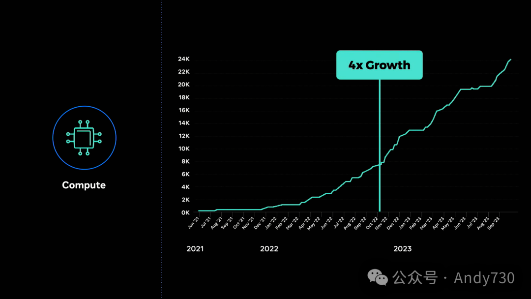 在Meta数据中心,今年年底我们将拥有60万台GPU设备。这是在现有CPU基础设施之外的额外投入,使我们能运行多个并行工作负载。