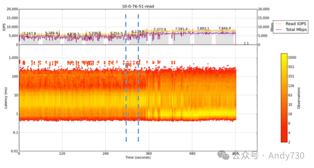 除此之外,硬盘性能也会因队列中的其他事务而变化。随机分布在介质上的小请求比相邻的大请求需要更长的时间来查找和访问。这种随机性能导致行为极不一致。我们很早就知道,需要将客户分散到多个硬盘上以实现合理的性能。这有一个好处,它降低了最热工作负载的峰值异常延迟,但不幸的是,这也将不一致的行为扩散到了许多客户。