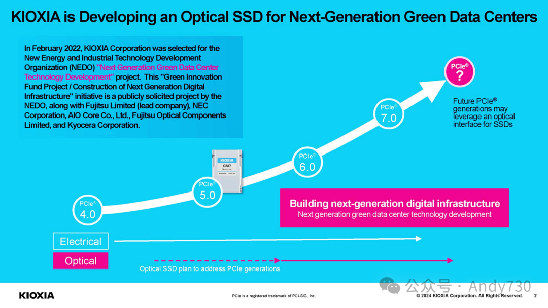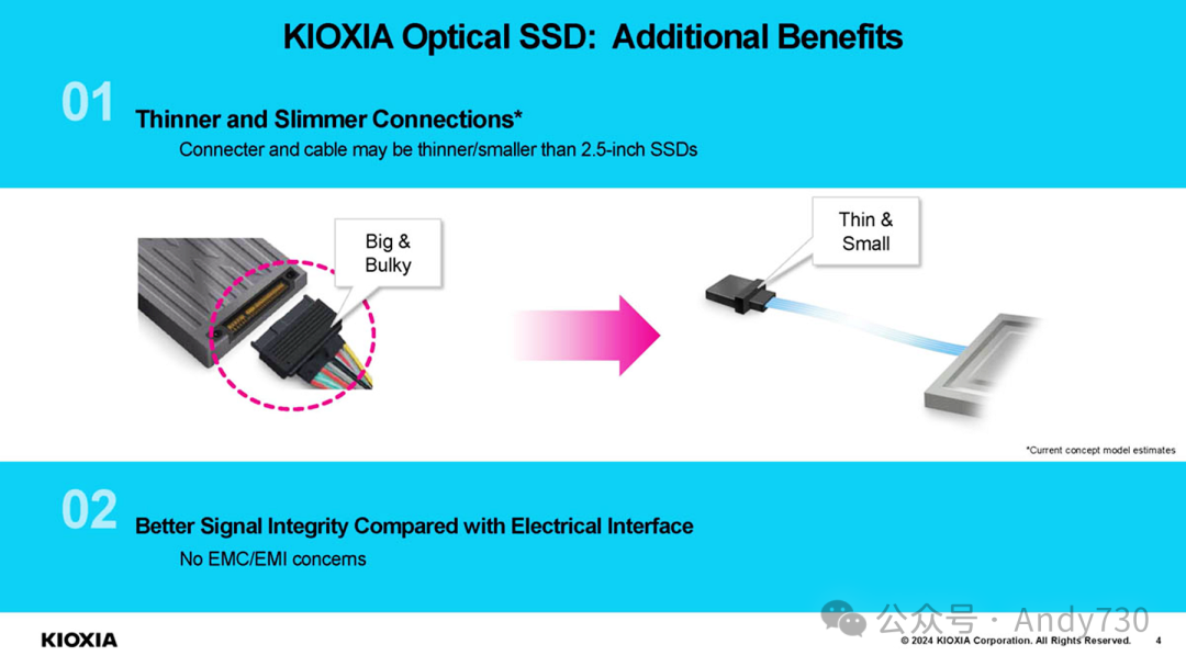 Kioxia展示SSD光学接口、SSD RAID卸载技术和2Tb QLC闪存。