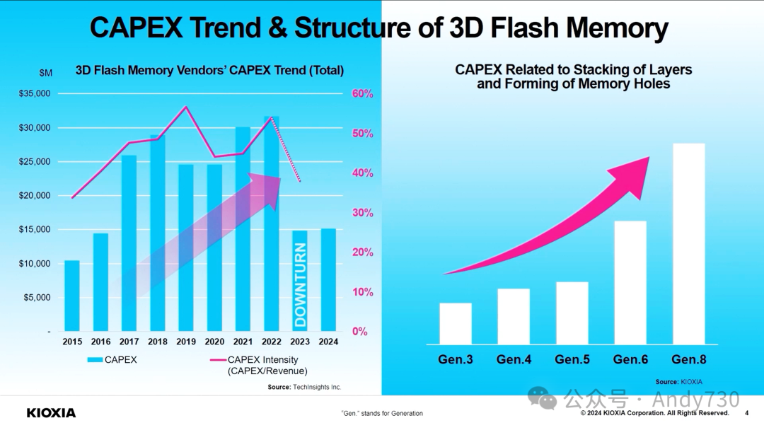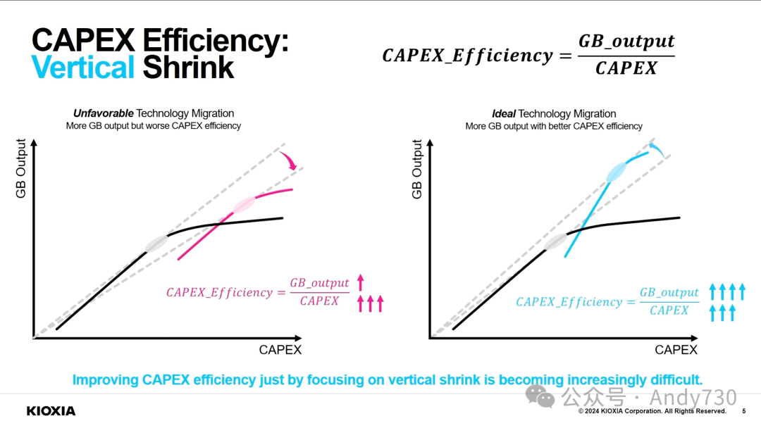 FMS展会规模扩大,除了磁记录产品,还涵盖了NAND闪存。NAND闪存层数增长明显放缓,主要是因为单纯增加层数带来的成本下降效果已经减弱。今年主要厂商更关注通过减小单元间距、增大单元直径、提高单元存储密度等方法来提升闪存容量。