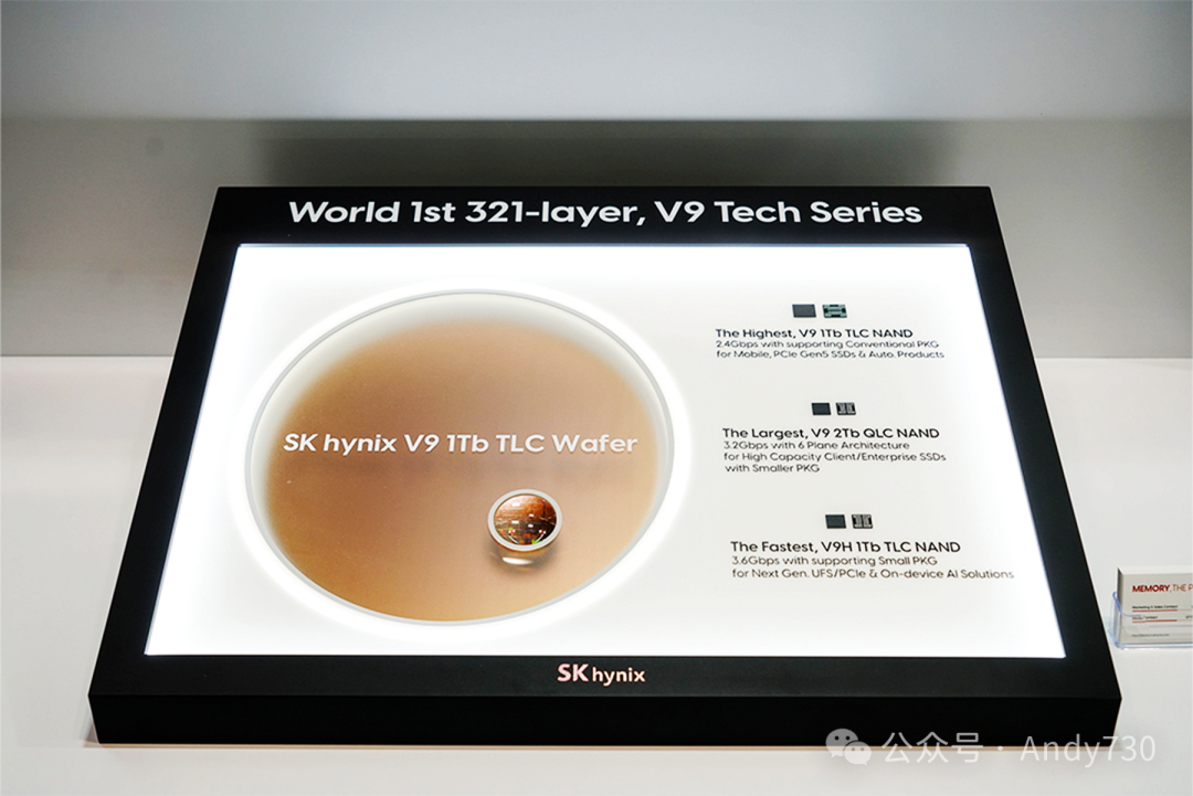 值得一提的是,Samsung的第九代V-NAND晶圆也在展会中亮相,尽管禁止拍照,但这款闪存的量产已于2024年4月正式启动。