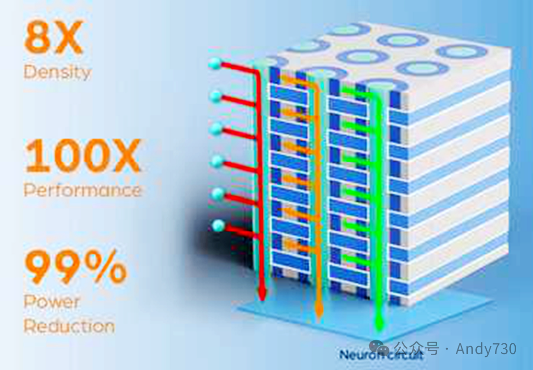 性能飞跃:实现100倍的性能加速,得益于芯片内置的8000个神经元电路,在3D内存环境中高效执行AI任务。