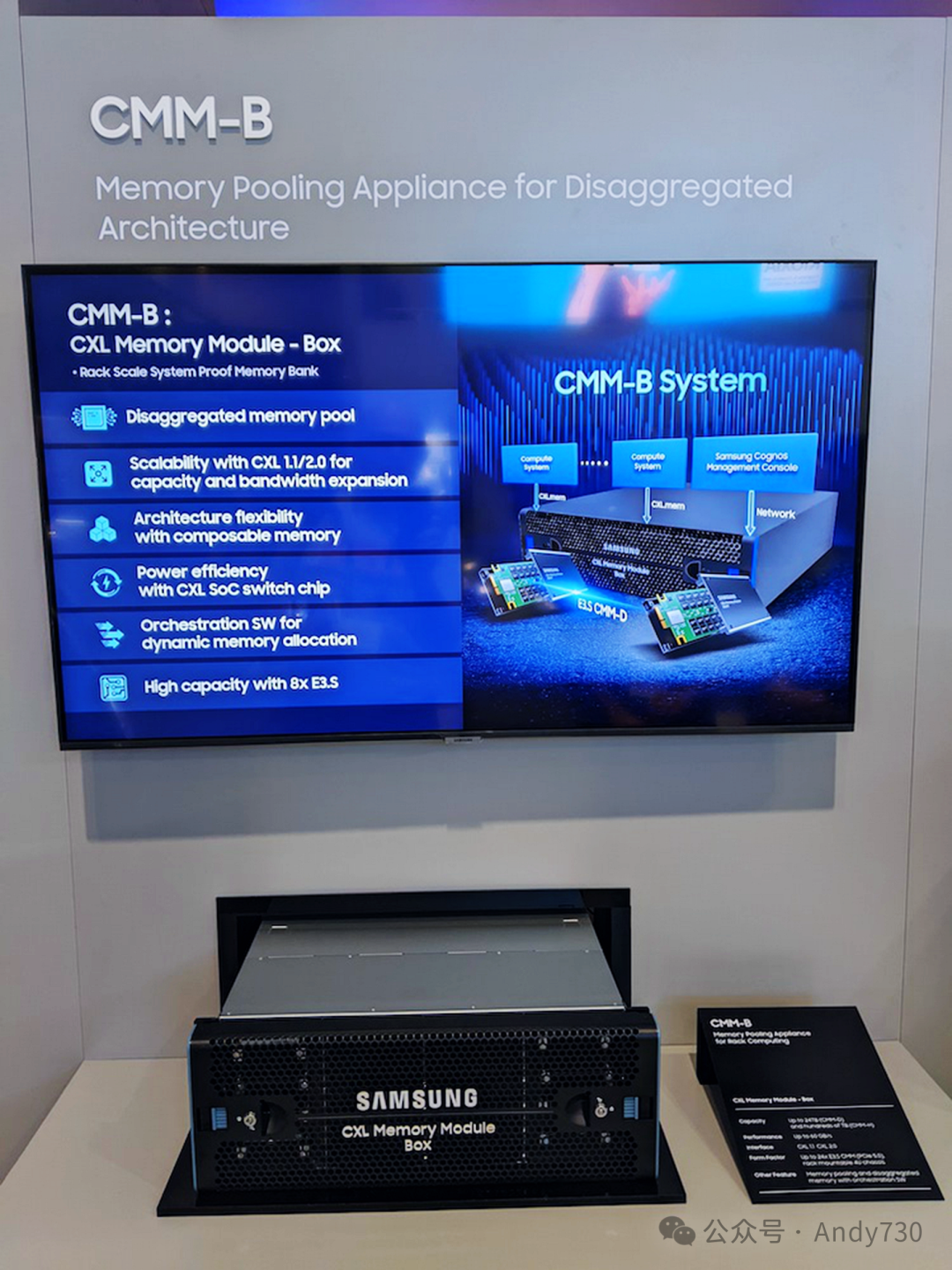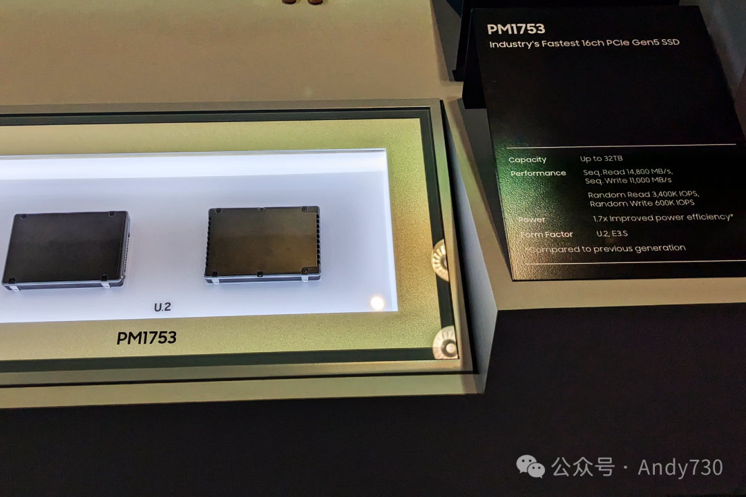 Samsung展示多款CXL解决方案、新型HBM内存,以及128TB容量的BM1743 SSD。