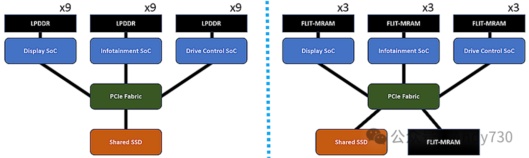 图5:汽车解决方案中LPDDR与FLIT-MRAM的比较