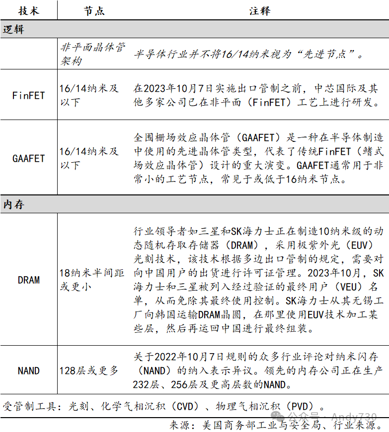 2022年10月7日商务部发布的规则中最复杂和有争议的部分是对半导体制造工具和美国人员的最终用途控制。半导体制造设备(SME)控制要求对用于制造16/14纳米逻辑半导体、128层3D NAND存储器和18纳米DRAM半节距的设备和美国人员进行许可。这些控制措施最初是单方面实施的,没有与其他占据关键供应链环节的国家(如日本和荷兰)达成协议,导致美国领先的工具制造商如应用材料、KLA-Tencor和Lam Research被迫撤回其所有美国人员,特别是在中国的代工领导者中芯国际、NAND存储器巨头长江存储和DRAM主要制造商长鑫存储。此外,这一限制还对中国国内半导体设备制造商的输入施加了控制,试图阻止他们取代外国设备领导者。几乎在一夜之间,整个中国国内制造和工具设备行业进入了一个全新的时代。