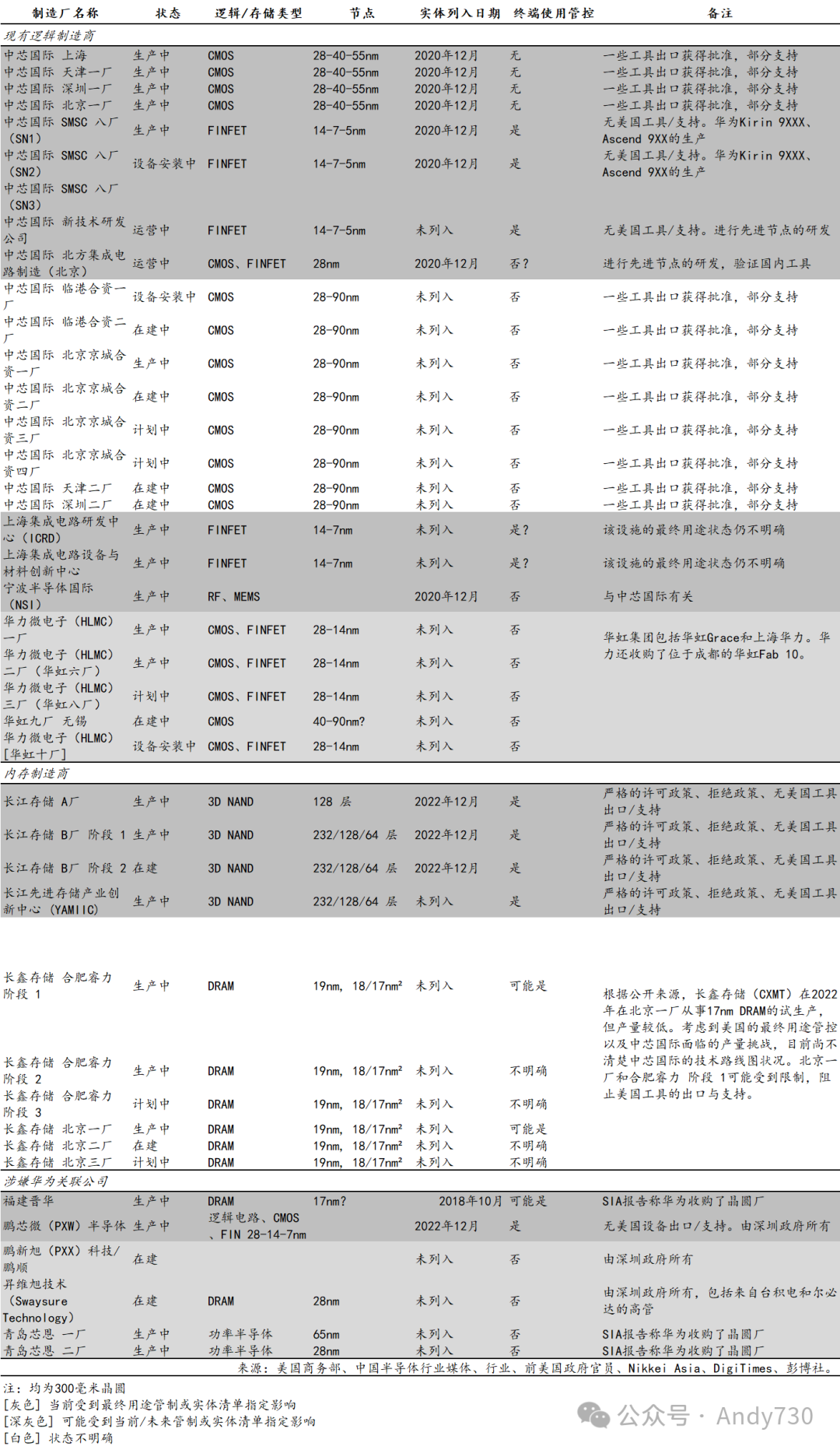 图2. 受美国、日本和荷兰工具限制影响的中国晶圆厂