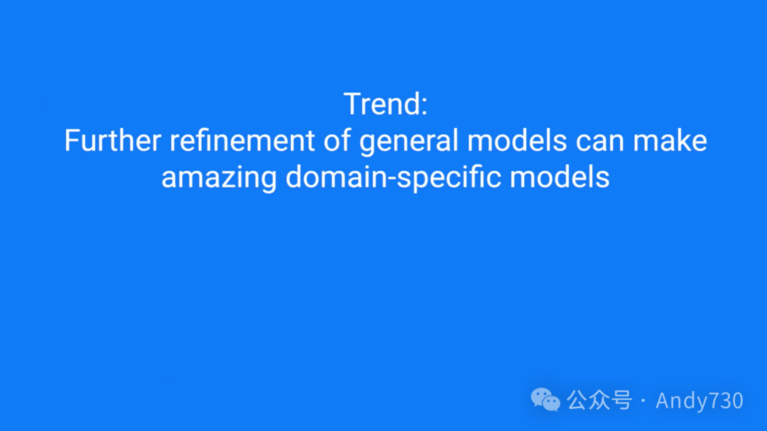 另一个重要的趋势是,通过进一步精炼这些通用模型,可以创建出令人惊叹的领域专用模型。