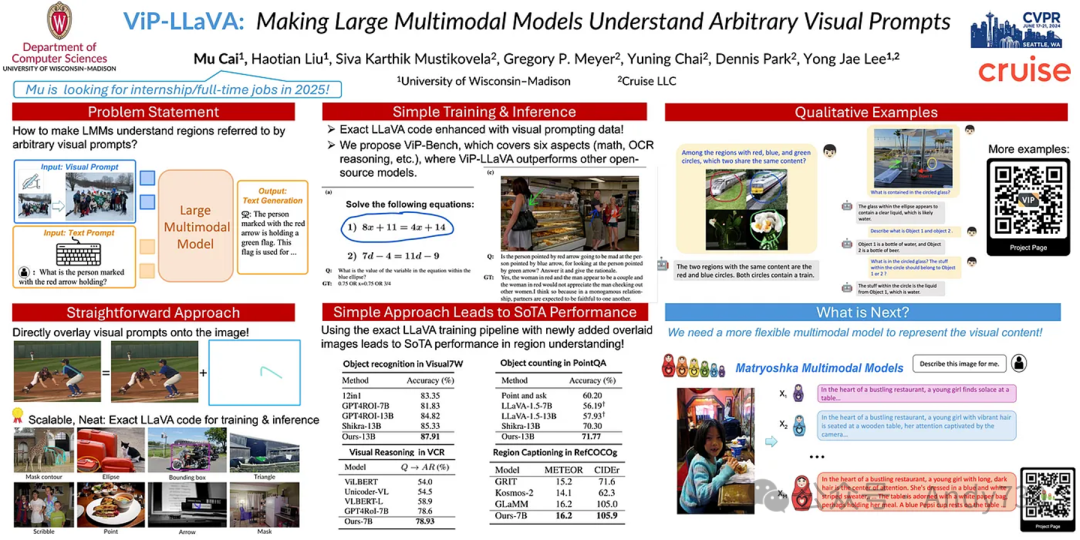 论文链接:https://openaccess.thecvf.com/content/CVPR2024/papers/Cai_ViP-LLaVA_Making_Large_Multimodal_Models_Understand_Arbitrary_Visual_Prompts_CVPR_2024_paper.pdf