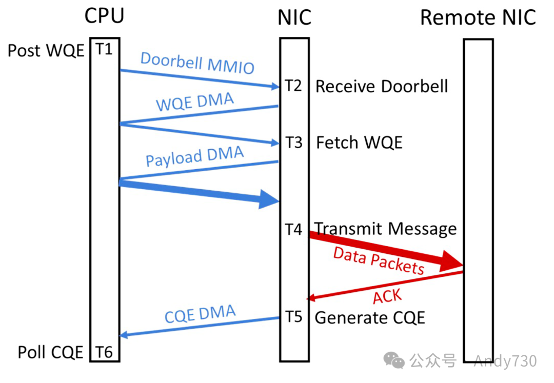 T5:CQE生成时间戳,标记NIC生成完成队列元素(CQE,Completion Queue Element)的瞬间。