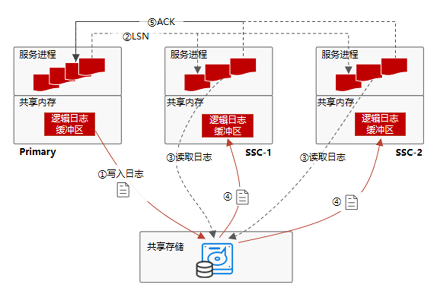 SSC集群缓存采用各节点独立架构,各节点上数据缓存不一定相同。当主节点有数据更新时,通过传递页号的方式通知各辅助节点,辅助节点接到通知后,更新自己的数据缓存,以保障数据缓存的一致性,不存在过期的数据页。当访问缓存时,缓存全部在本地,不存在网络开销。