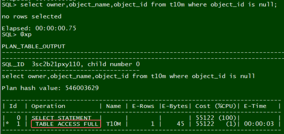 select owner,object_name,object_id from t10m where object_id is null;