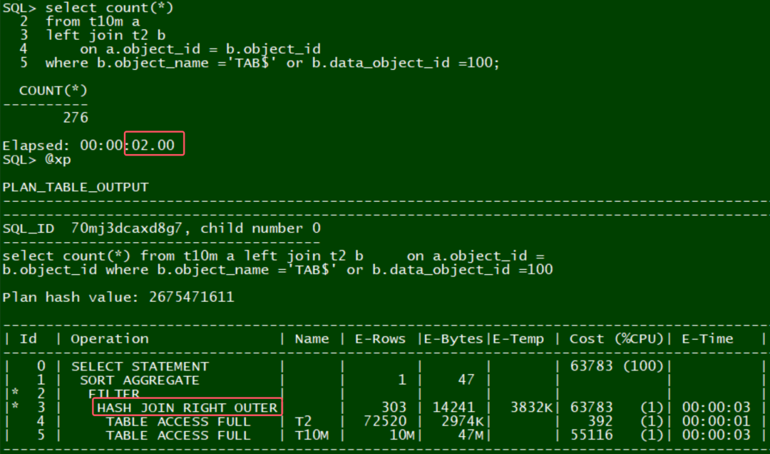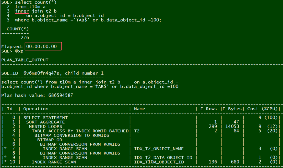 oracle的表现一般, 两个大表都使用了全表扫描: