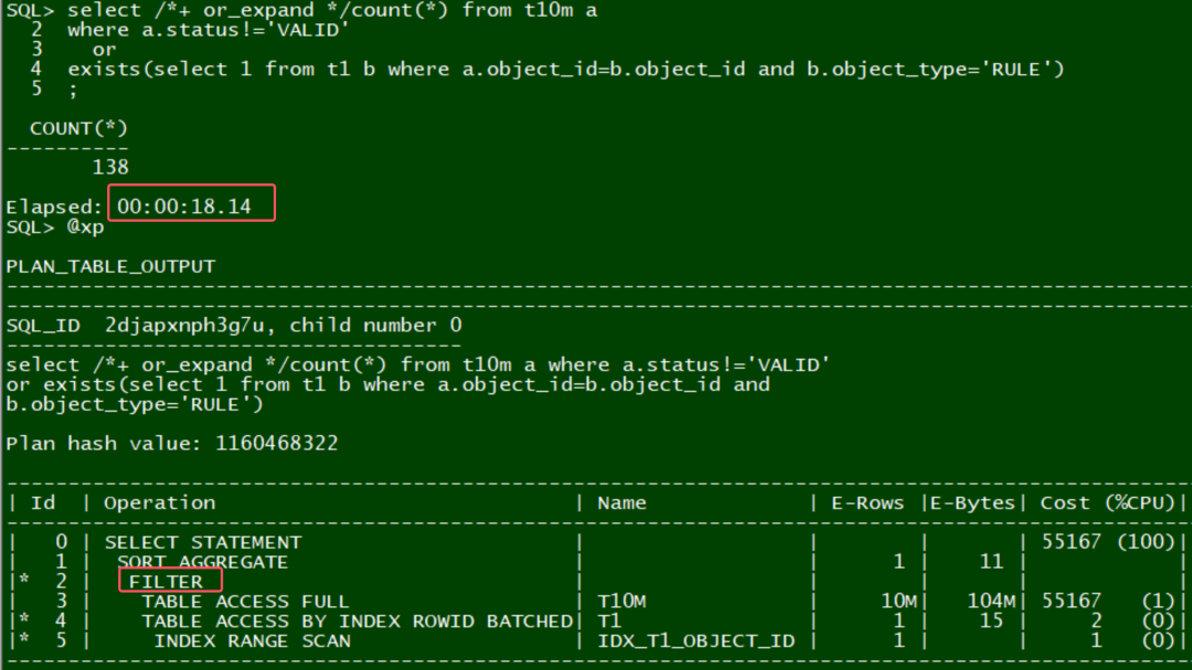 OB不加hint, 自动expand, 执行效率比较高:
