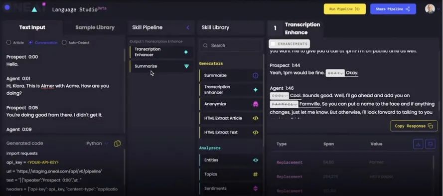 “One AI 的初衷,就是要普及 AI 技术,以 AI 即服务的形式降低企业准入门槛,”公司联合创始人兼首席执行官 Amit Ben 阐述道。“我们面向的是各类产品和服务型企业,他们将 One AI 视为产品价值体系中不可或缺的一环。” Ben 介绍说。“目前,我们的客户来自金融报表分析、视频智能剪辑等各行各业,涉及的业务场景十分广泛。”
