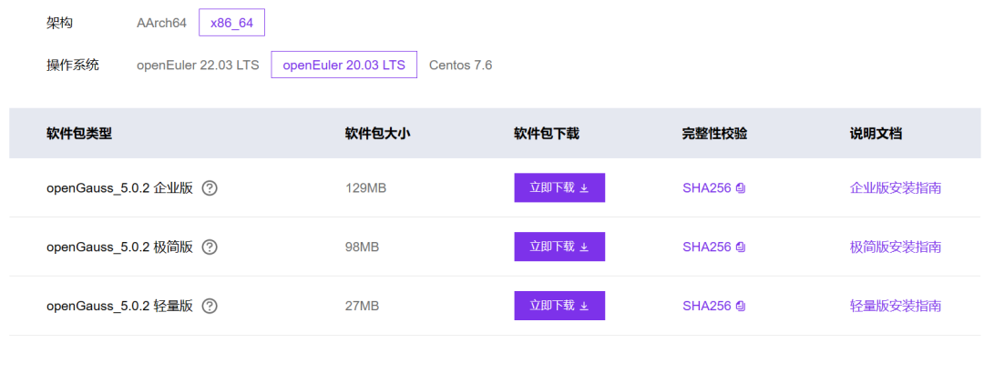 下载openGauss_5.0.2企业版openEuler_20.03_LTS版本