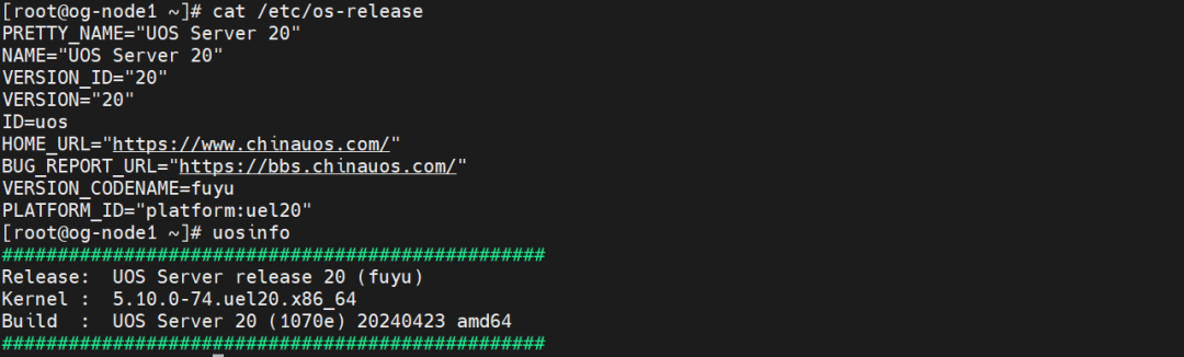 PRETTY_NAME="UOS Server 20"NAME="UOS Server 20"VERSION_ID="20"VERSION="20"ID=uosHOME_URL="https://www.chinauos.com/"BUG_REPORT_URL="https://bbs.chinauos.com/"VERSION_CODENAME=fuyuPLATFORM_ID="platform:uel20"
