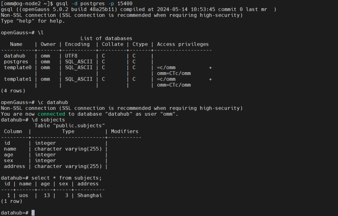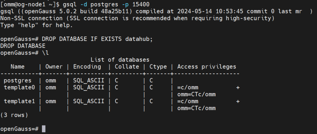 openGauss=# ALTER USER omm WITH PASSWORD 'openGauss@omm';