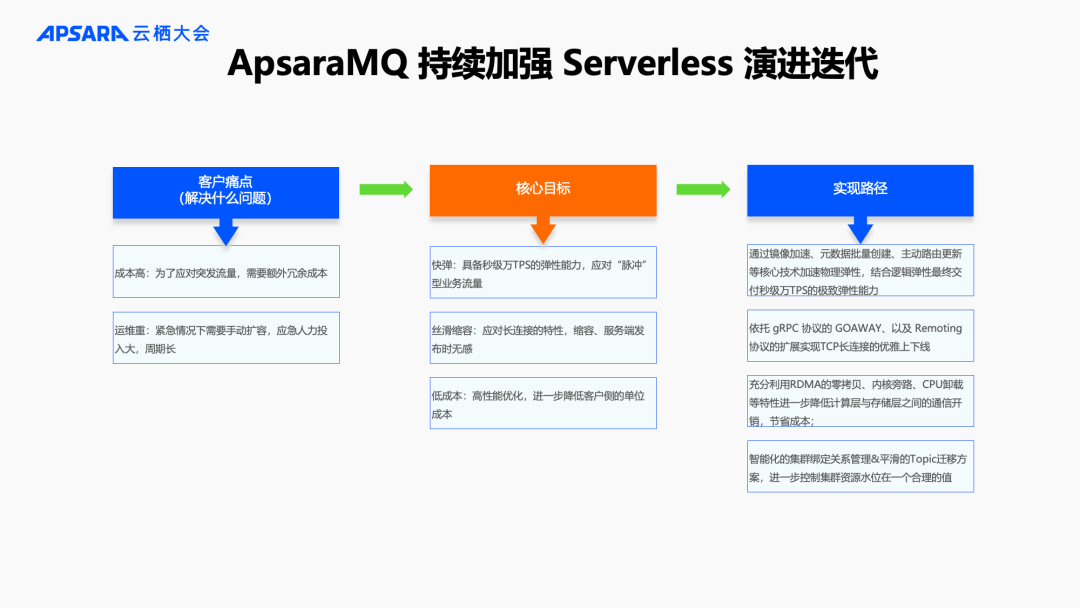 过去一年,云消息队列 ApsaraMQ 持续升级 Serverless 系列的架构和功能,实现更优的弹性和成本,并显著增强了稳定性和安全性以及通过智能化策略促进运维自动化等。