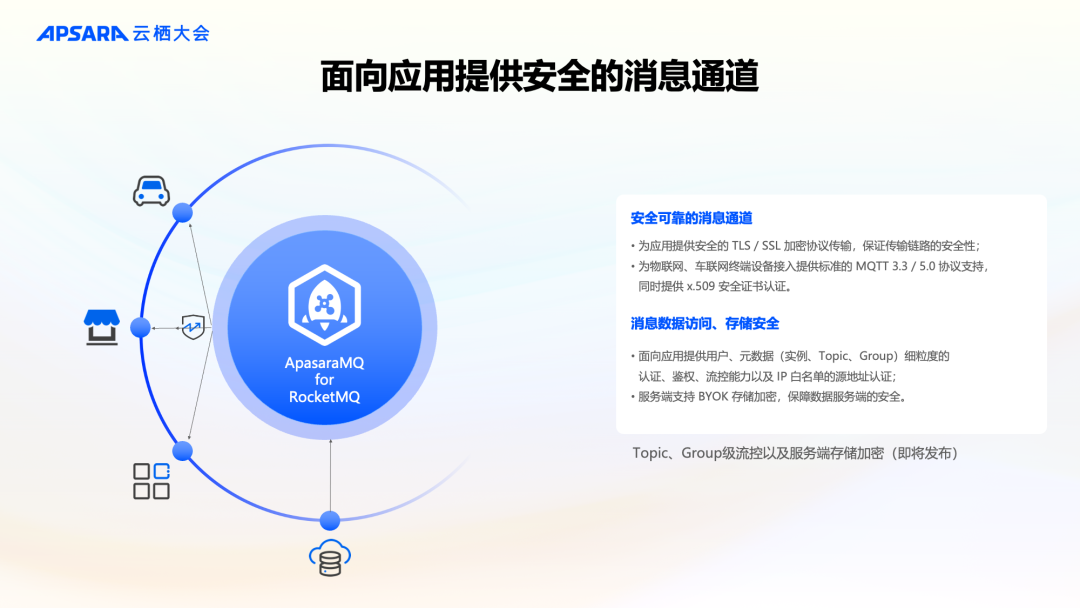 数据访问安全:面向应用提供用户、元数据(实例/Topic/Group)的细粒度认证、鉴权和流控,以及 IP 白名单的源地址认证。
