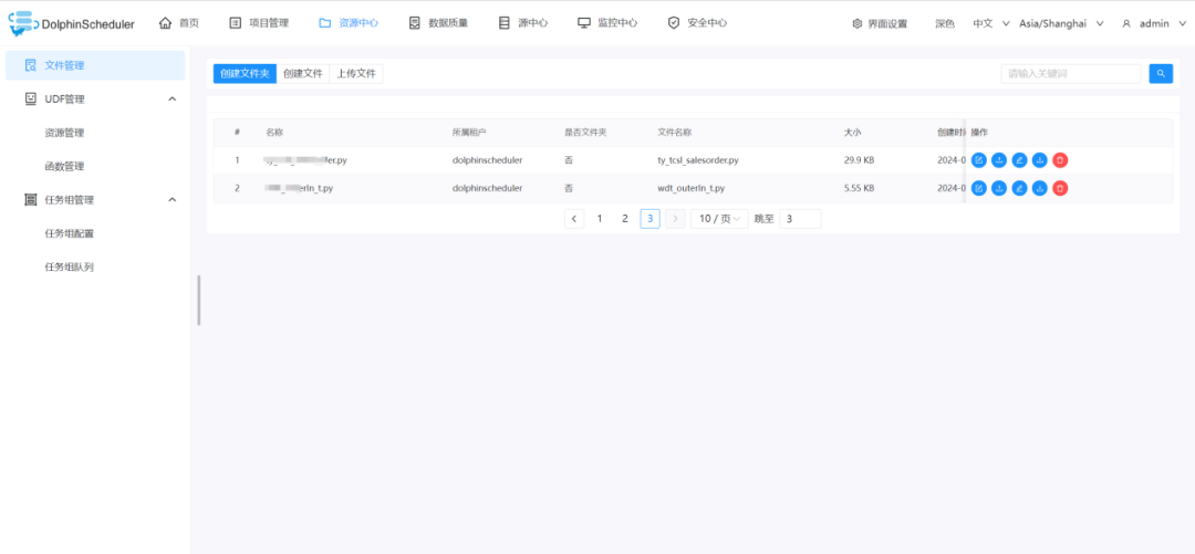 2、资源中心的文件管理可以上传py文件作为资源,供第1点创建工作流的时候使用(第1点中import的文件就是文件管理中的资源)。