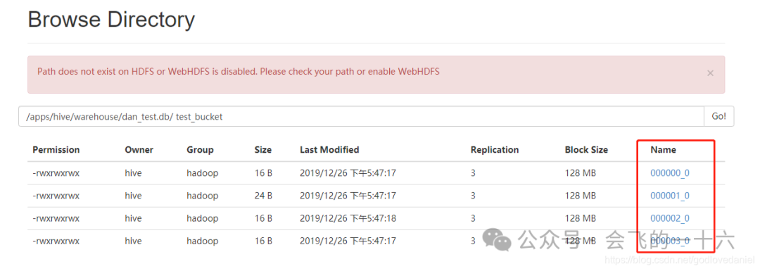 HDFS:桶是以文件的形式存在的,而不是像分区那样以文件夹的形式存在。