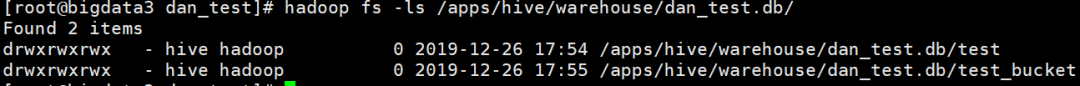 hadoop fs -ls apps/hive/warehouse/dan_test.db/